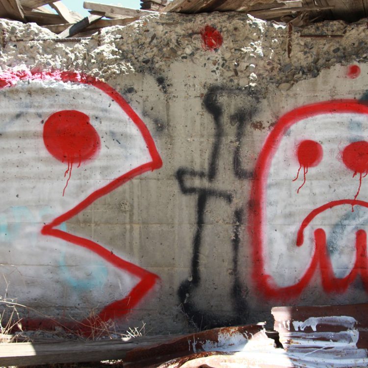 Red White Pac Man Spray Paint Graffiti On Wall