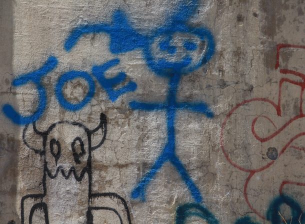 Spray Paint Graffiti Figure In Blue On Wall