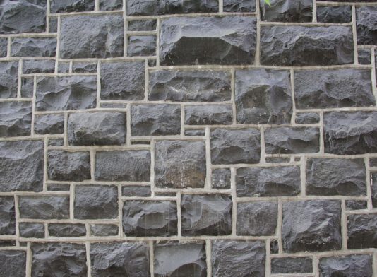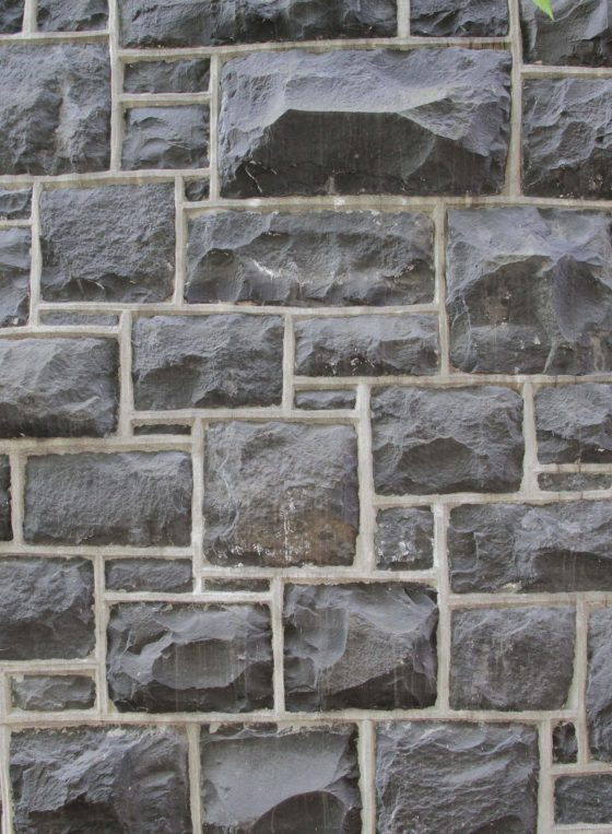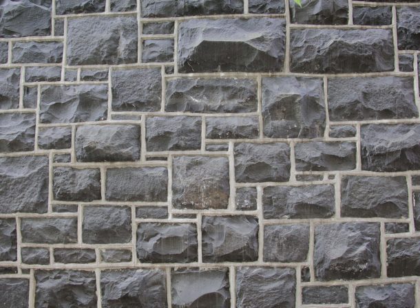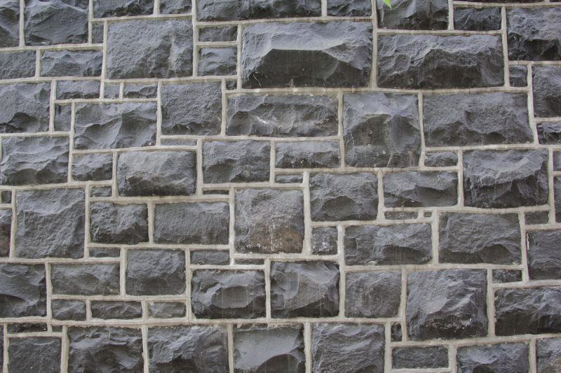 Stone Wall With Gray Bricks With Black Vertical Drops