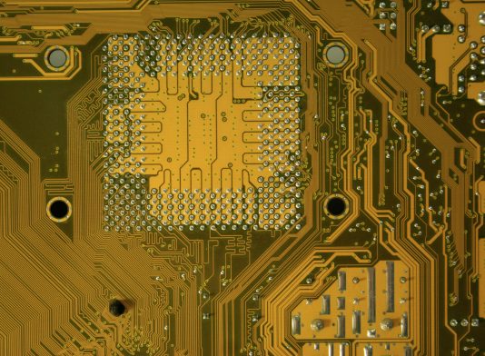 Computer Texture Yellow Motherboard Circuit Stock Photo