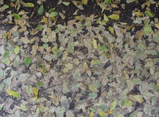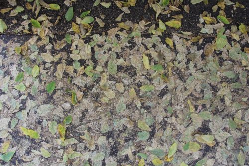 Ground Leaves Covering Black Underlayment