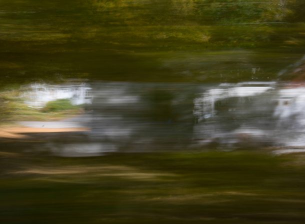 Light Texture Blur Streaking By Green Forest Stock Photo