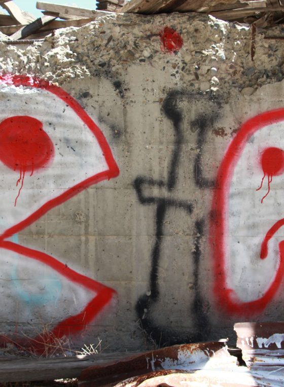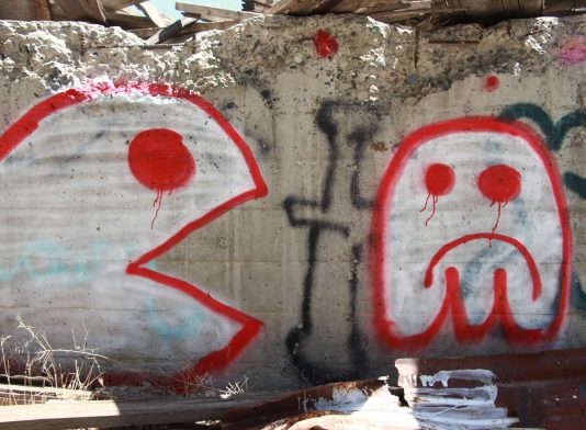 Red White Pac Man Spray Paint Graffiti On Wall