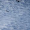 Sky Texture Bald Eagle Silhouette Ribbon Clouds White Blue Stock Photo