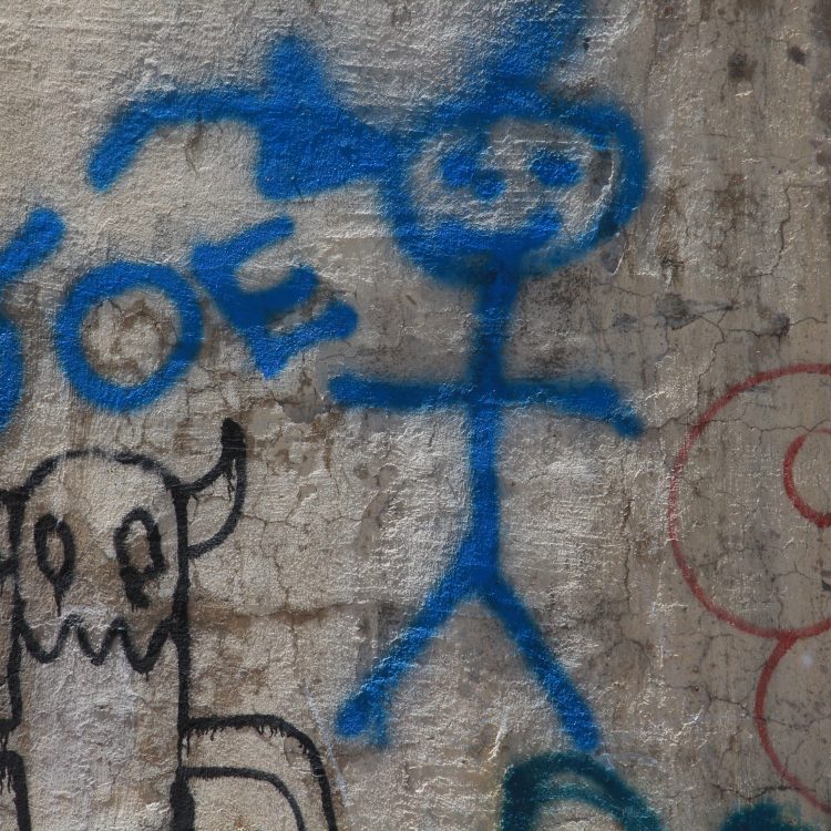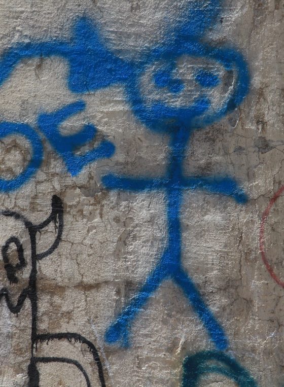 Spray Paint Graffiti Figure In Blue On Wall