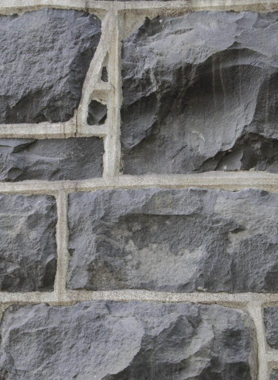 Stone Wall With Gray Bricks With Black Vertical Drops